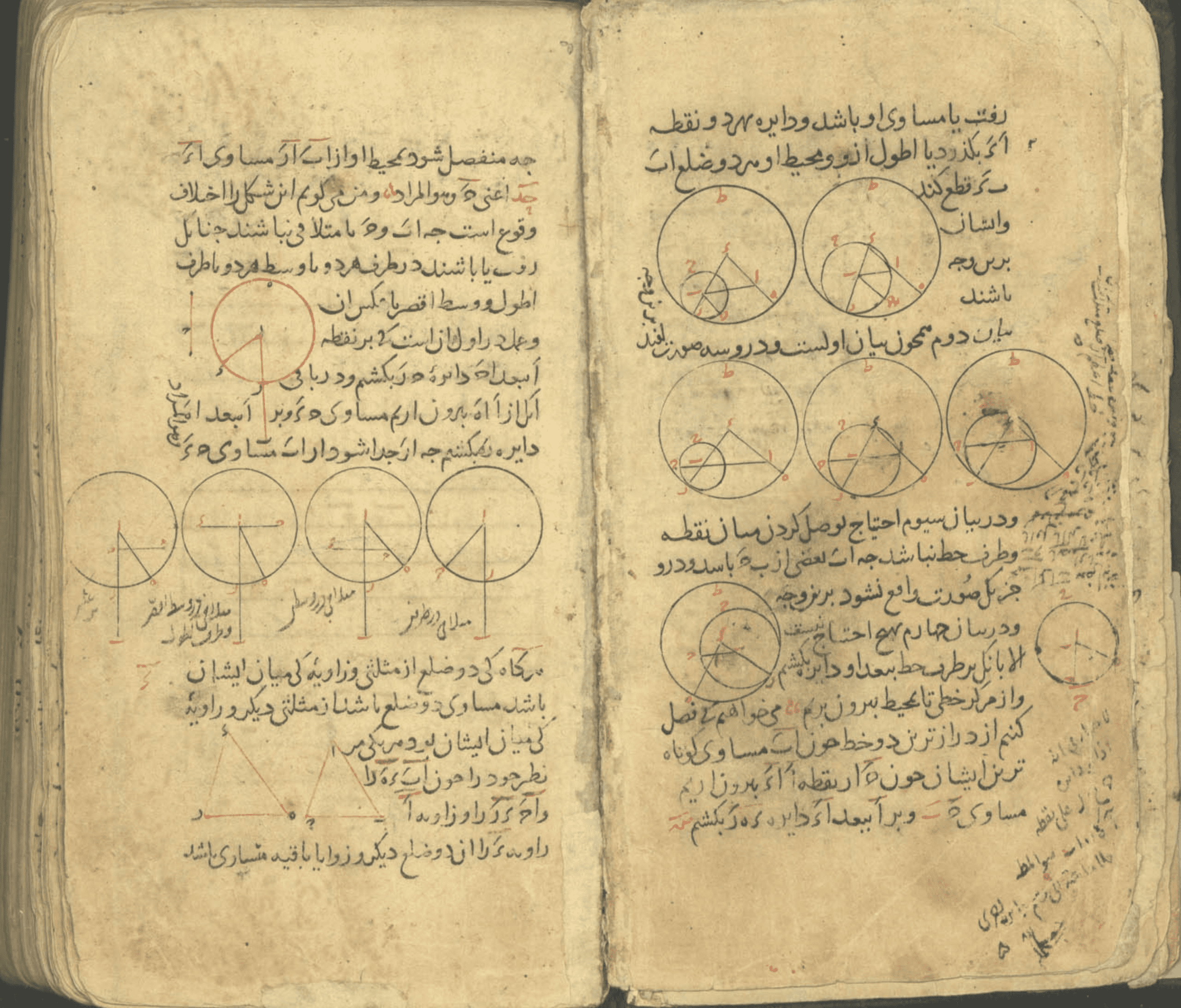 تحریر اصول اقلیدس، خواجه نصیرالدین طوسی (د: 672هـ)، ترجمۀ قطب‌الدین شیرازی (د: 710هـ)، کتابت شده در 2 ربیع الثانی 698هـ